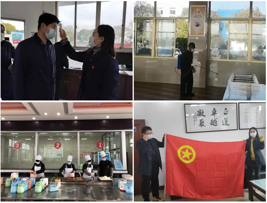 他们投身一线,每天清晨为入厂员工测量体温,发放防护用品;每天为生产楼、行政楼、员工宿舍、班车等重点防护区域进行消毒灭菌;每天为生产人员装好饭菜送至指定用餐区域。他们每时每刻都在用行动诠释着共产党员和共青团员的使命与担当。