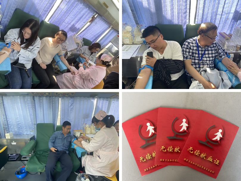 上午10:30,行政楼一楼会议室,献血员工排起队伍,按照献血流程登记、填表、体检、采血,泰州市中心血站工作人员在旁协助、疏导、服务。献血人员中有率先垂范的党员同志、有多年坚持参加献血活动的老同志、也有来自生产一线的青年同志、更有巾帼不让须眉的女性员工,他们用实际行动展示了金泰人的无私奉献精神,诠释了企业的责任与担当,弘扬了社会主义正能量。随后,血站工作人员为参与献血的员工颁发了献血证书并告知注意事项。本次献血活动共计9人次,累计献血量2700毫升,参与献血活动的员工纷纷表示,本着弘扬金泰“正道、凝聚、卓越”的企业文化精神,愿为社会群体贡献自己的一份力量,用爱心传递爱心,为生命加油。