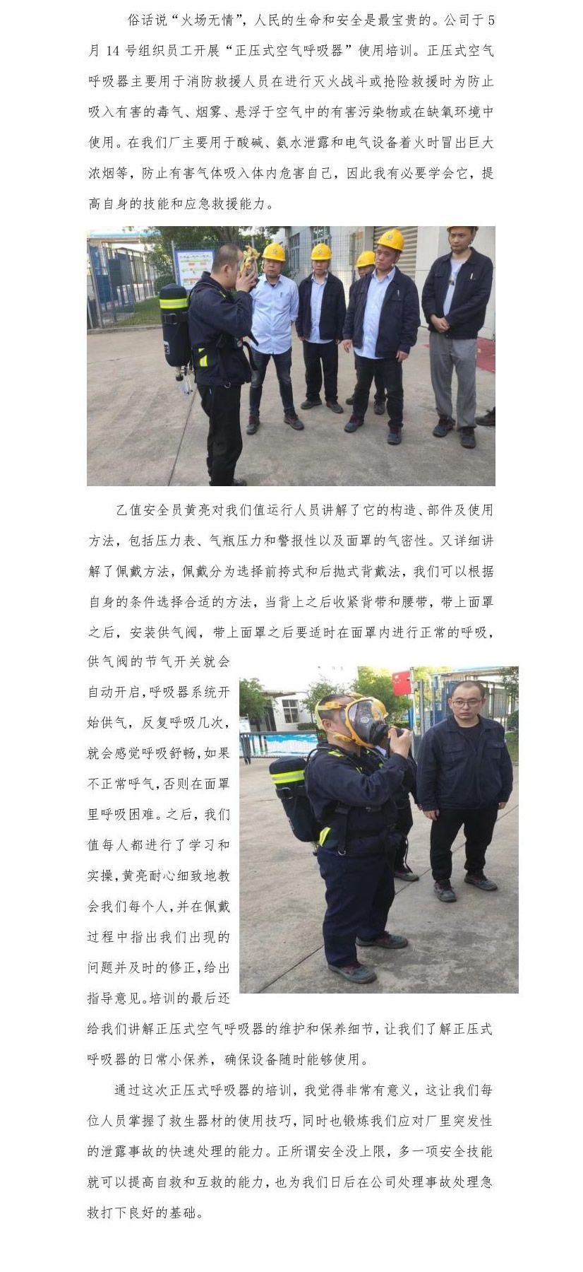 [米兰官方网页版] 加强实操演练 提升应急能力-正压式空气呼吸器培训有感